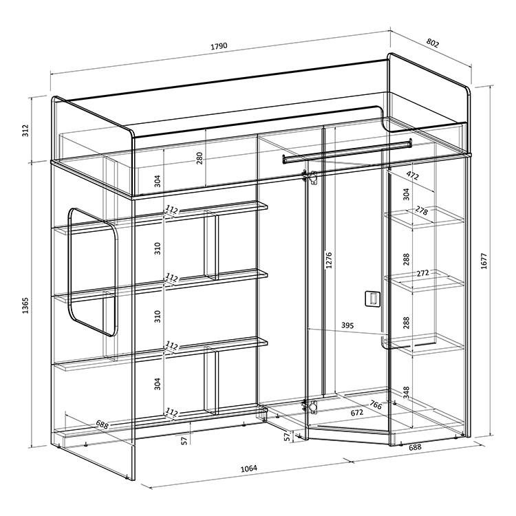 Высота кровати чердака всего 1677 мм.